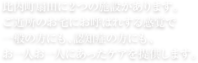 ニーズに合わせた2つの施設があります