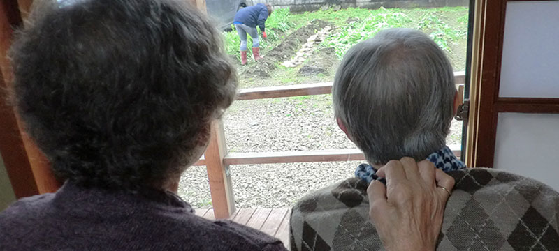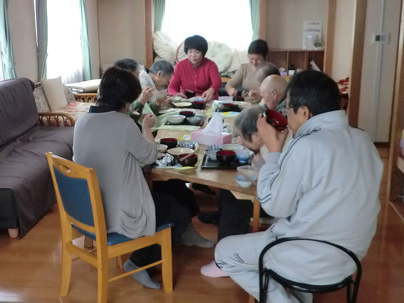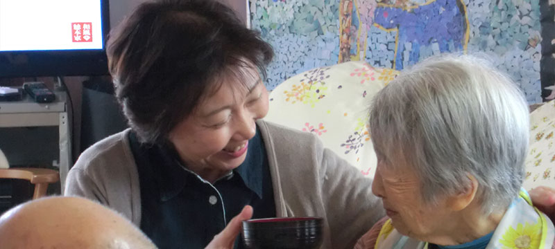 私が認知症介護に出会ったのは、1997年暮れ、テレビ取材がきっかけでした。介護保険制度が始まる前から、福岡県福岡市で住民と一緒に認知症介護を行っていた「宅老所 よりあい」の取材でした。そこで私は初めて認知症の方に出会い、認知症介護にも初めて触れたのでした。印象的だったのは、第一に認知症の方がそれまでの人生を映した姿を認知症になっても維持されておられたこと、感情は生き生きと保たれておられたことでした。第二はその介護のあり方です。介護職の方の鋭い観察とさりげない言動です。徘徊に付き添い、水分補給やトイレ誘導を自然に行う姿には感動すら覚えました。「介護者の都合ではない、ご本人ペースの介護」の在り方を見知ったのでした。それから継続取材を続行。妻が大館市出身だったご縁から、2008年12月、「宅老所よりあい」の代表下村恵美子さん・村瀬孝生さんの了承を得て、「よりあい」の名をいただき、「よりあいたっこ森」はスタートしたのでした。