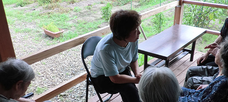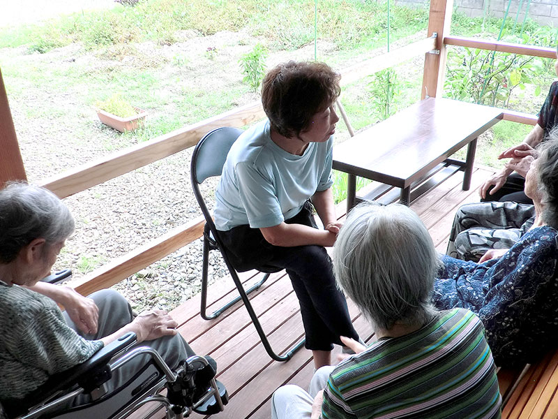 普通の民家を改築しました。ご近所のお宅にお呼ばれする感覚で気軽に訪ねて、あれこれ話に花を咲かせて、ついでにお風呂やお昼も呼ばれて、楽しく過ごせる場所です。また、地域の行事に参加したり、扇田市に買い物に出かけたり、庭の畑で、季節の花や野菜を育てたりします。「よりあい たっこ森」では、専門職のスタッフが、お一人お一人に寄り添い、最期まで地域の中で自分らしく暮らせる「在宅生活」を全力で支えて参ります。