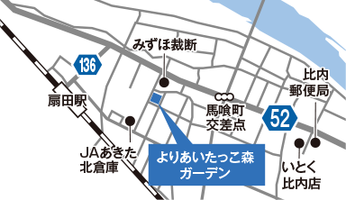 「よりあい たっこ森」には、比内町扇田に徒歩15分で行ける2つの施設「ガーデン」「ヒルズ」があります。
